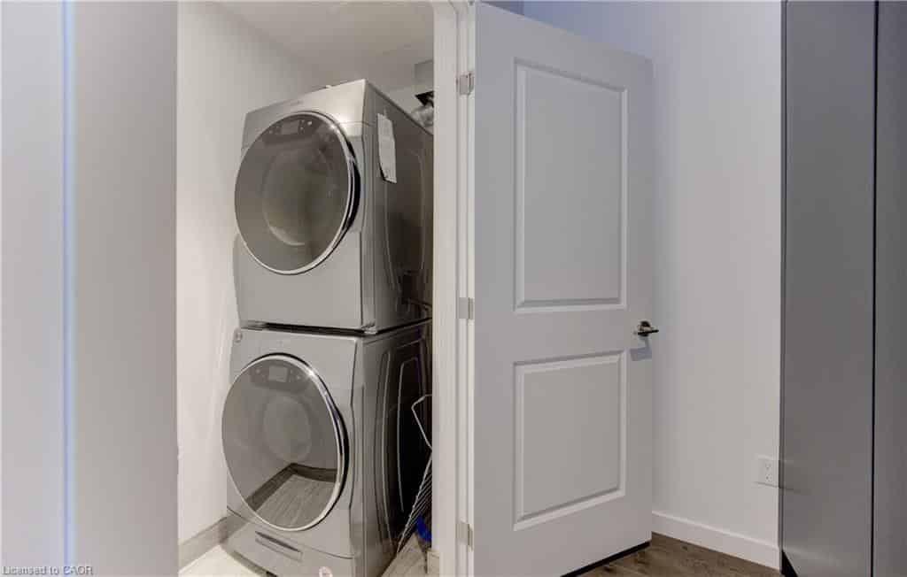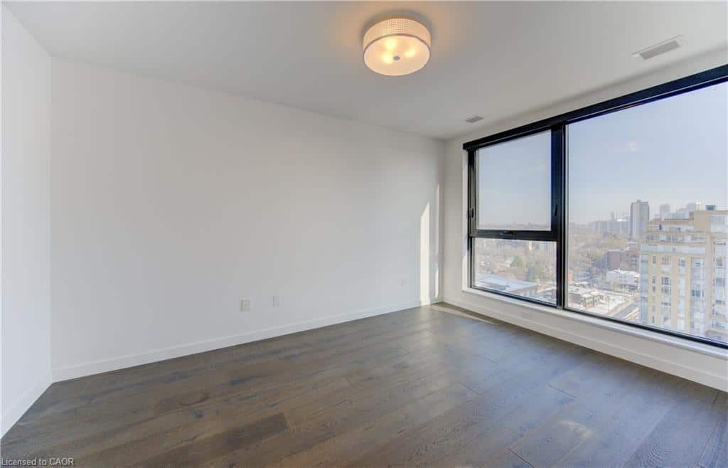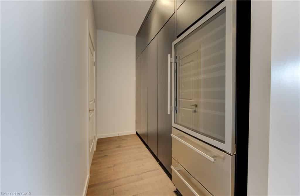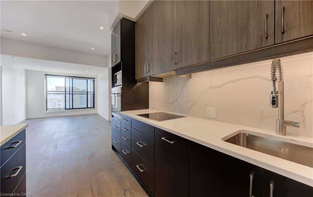 Perched above its Uptown neighbors, Suite 1510, offers panoramic views and floods of morning light through its expansive windows. The convenience of Lutron automation allows you to effortlessly control custom blinds via your smartphone. With 770 interior sq ft, the open-concept layout provides ample living space in the primary rooms, enhanced by 10-foot ceilings! Suite 1510 elevates the kitchen experience with marble-patterned quartz countertops, a matching slab backsplash, integrated appliances, and modern two-toned cabinetry, ensuring that you never run out of storage. An exceptional feature of this unit is the custom-built storage solution in the den area, complete with wall-to-wall cabinetry for effortless access. The master bedroom offers generous space for a full-size bedroom set or the option to incorporate a tailored closet solution. Residents at Circa 1877 enjoy access to leading amenities, including a stunning outdoor salt water pool, professionally designed co-working space, fitness center, yoga area, indoor/outdoor party room, and an exquisite lobby library. The building’s proximity to an iOn LRT stop ensures seamless connectivity throughout Kitchener and Waterloo, not to mention, it is just steps away from Uptown Waterloo. Don’t miss the opportunity to tour this remarkable unit.